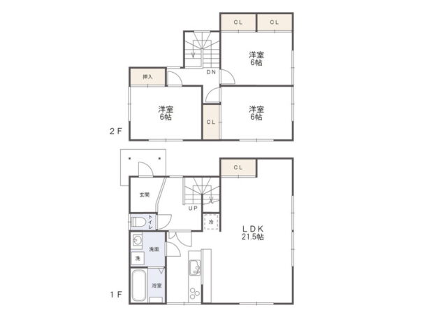 1階には21.5帖の広々としたLDKを配置。