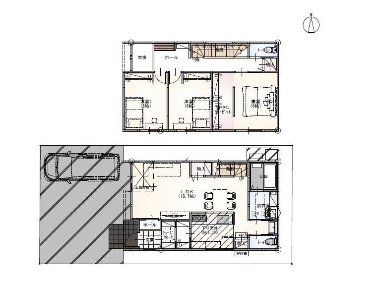 1階:LDK18.7帖 シューズクローク 水洗 浴室 洗面