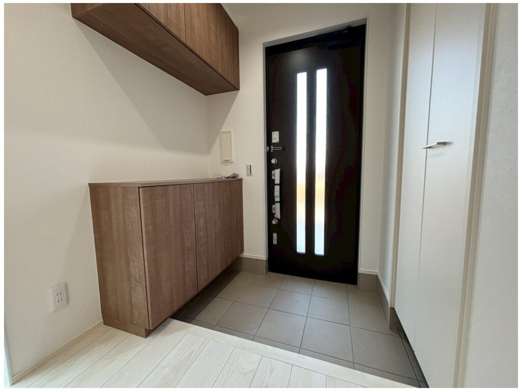 また、下駄箱とは別にエントランスクロークを設けており、外出時の上着や除雪用スコップなどもすっきり収納可能です。