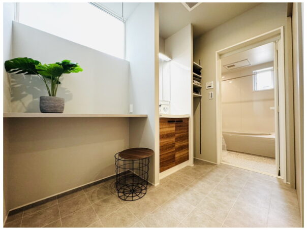 玄関とLDKどちらからも洗面脱衣室に繋がる回遊性のある導線が便利。