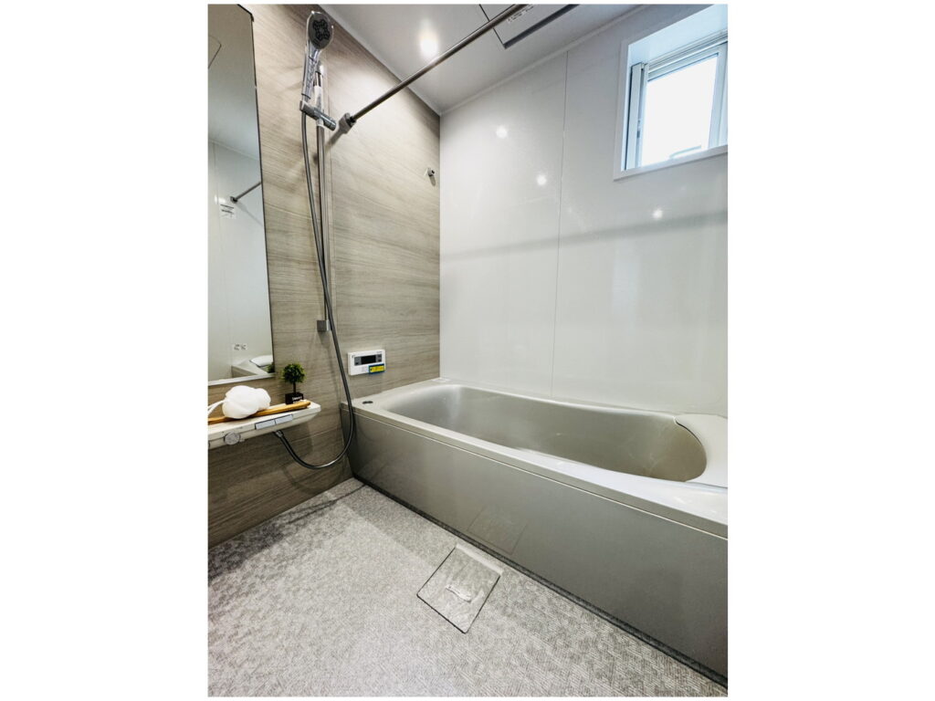 珍しいポイントは、浴室には取り外しのできるヘッドレスト付き!