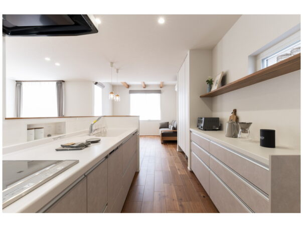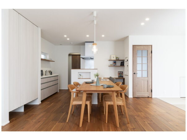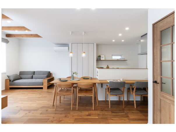 ホワイト×ウッド調で、明るく落ち着きのあるオシャレな室内。
