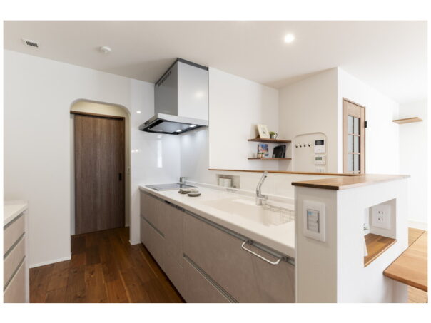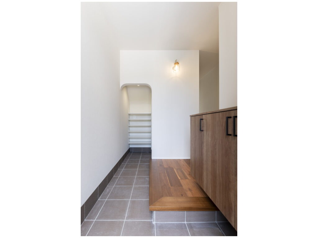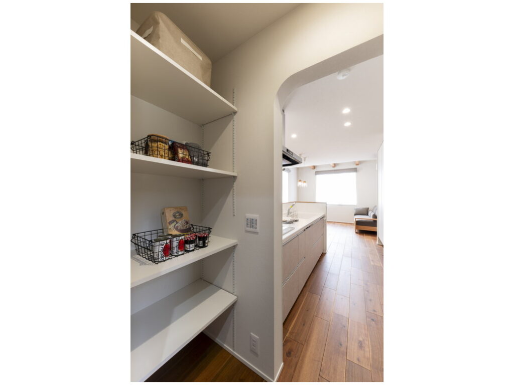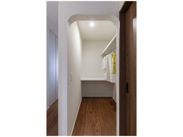 パントリー・ファミリークロークにも最近人気のアーチ壁の入り口を採用しており