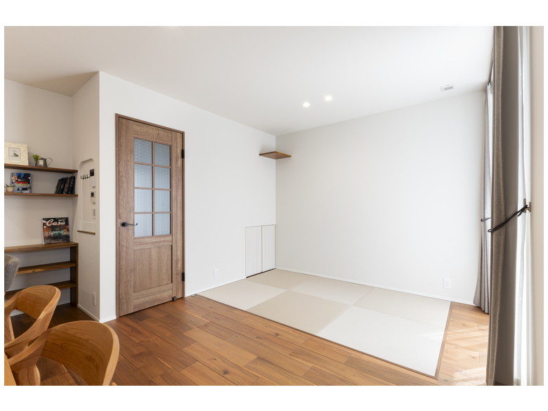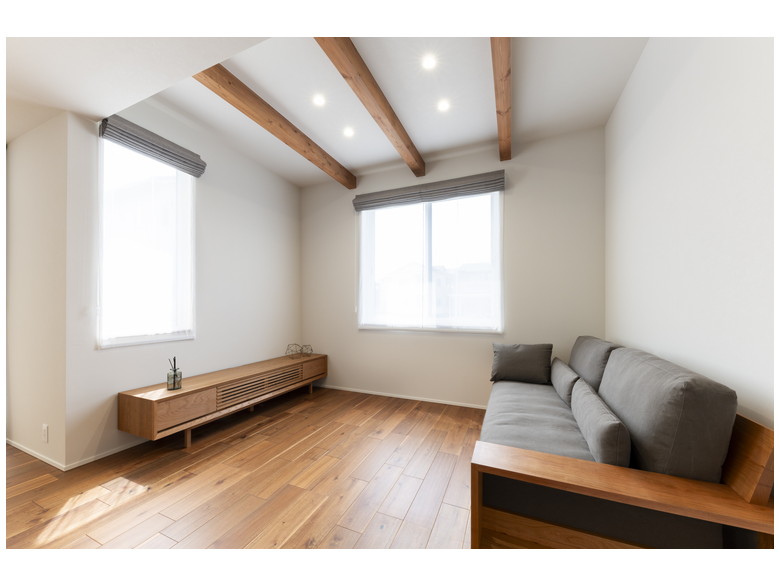 リビングの見せ梁、畳スペース、飾り棚などもオシャレな内装デザインです。