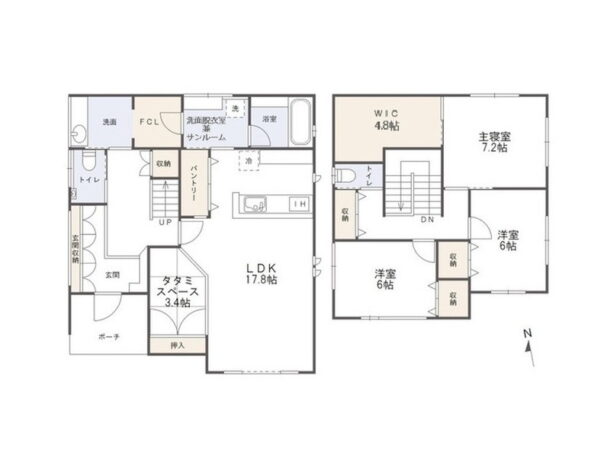 2階:洋室7.2帖+WIC4.8帖 洋室6帖×2室 水洗