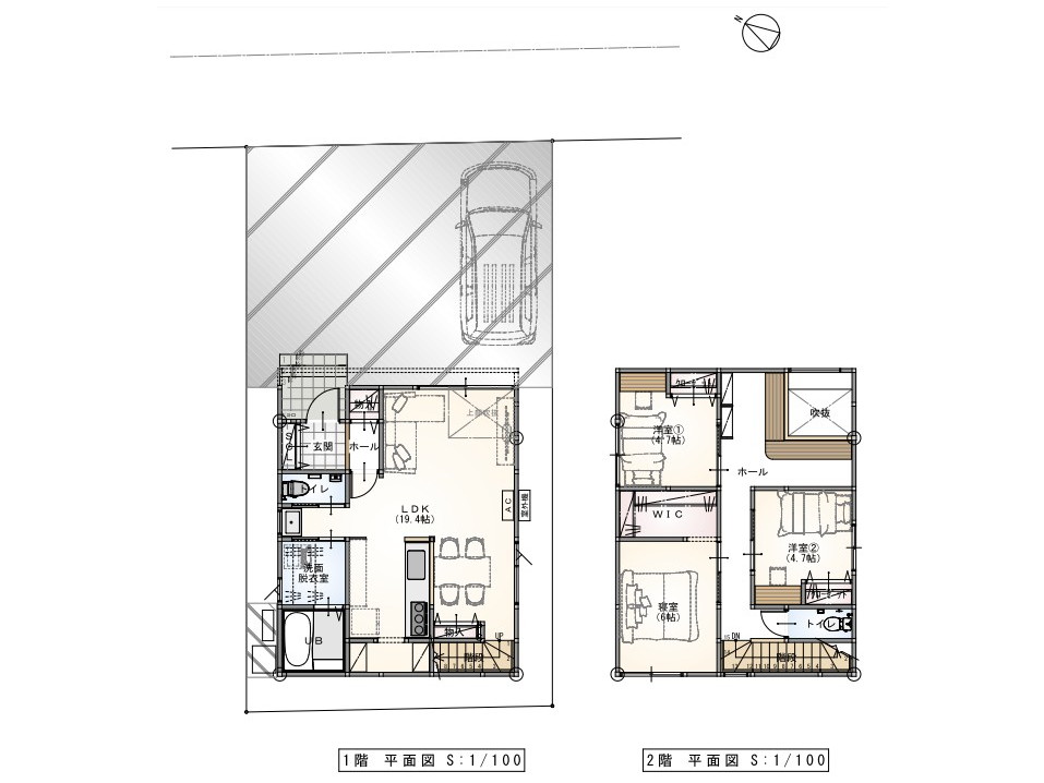 2階:洋室6帖+WIC 洋室4.7帖×2室 水洗