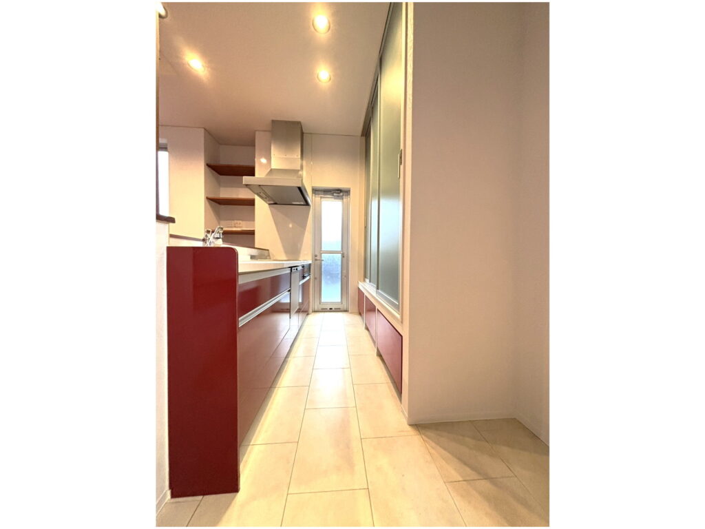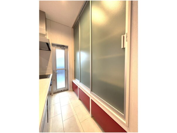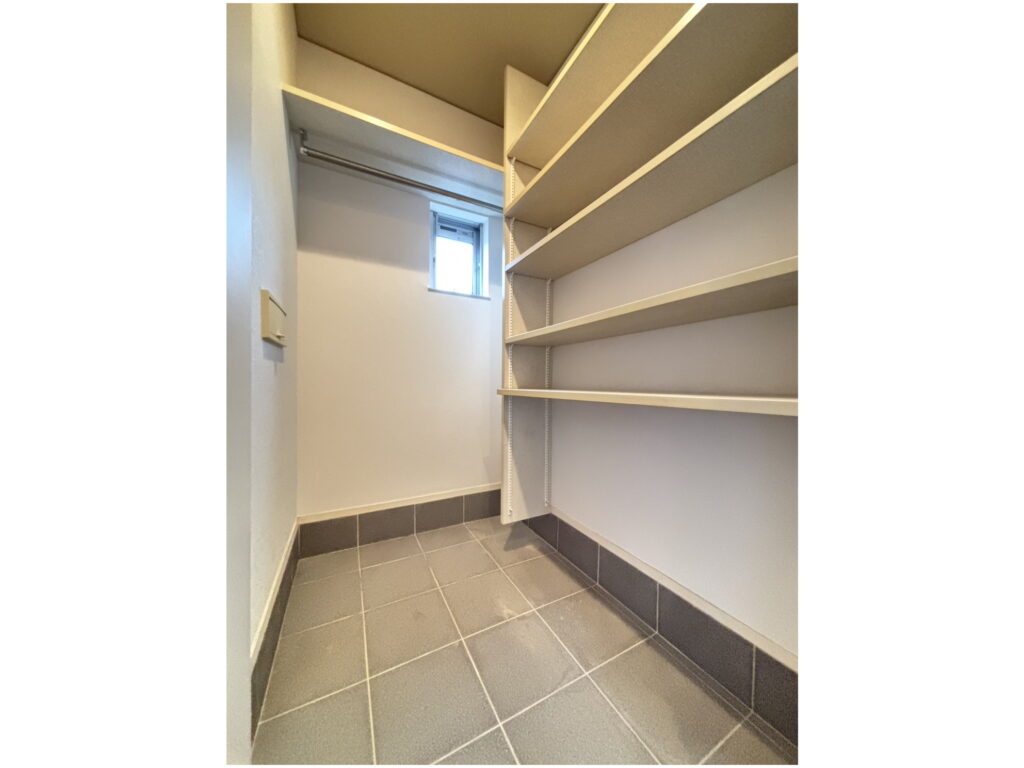 キッチン横にはパントリーとしても利用可能な階段下収納、